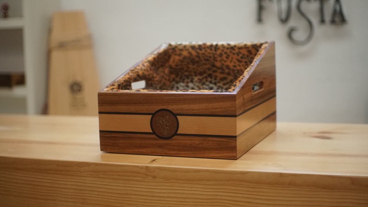 Dinos el formato de tus vinilos (7”, 12” o 14”), escoge entre una de nuestras telas molonas con las que tapizamos el acolchado y déjanos que te asesoremos para elegir el tipo de madera y la posible customización de tu caja.