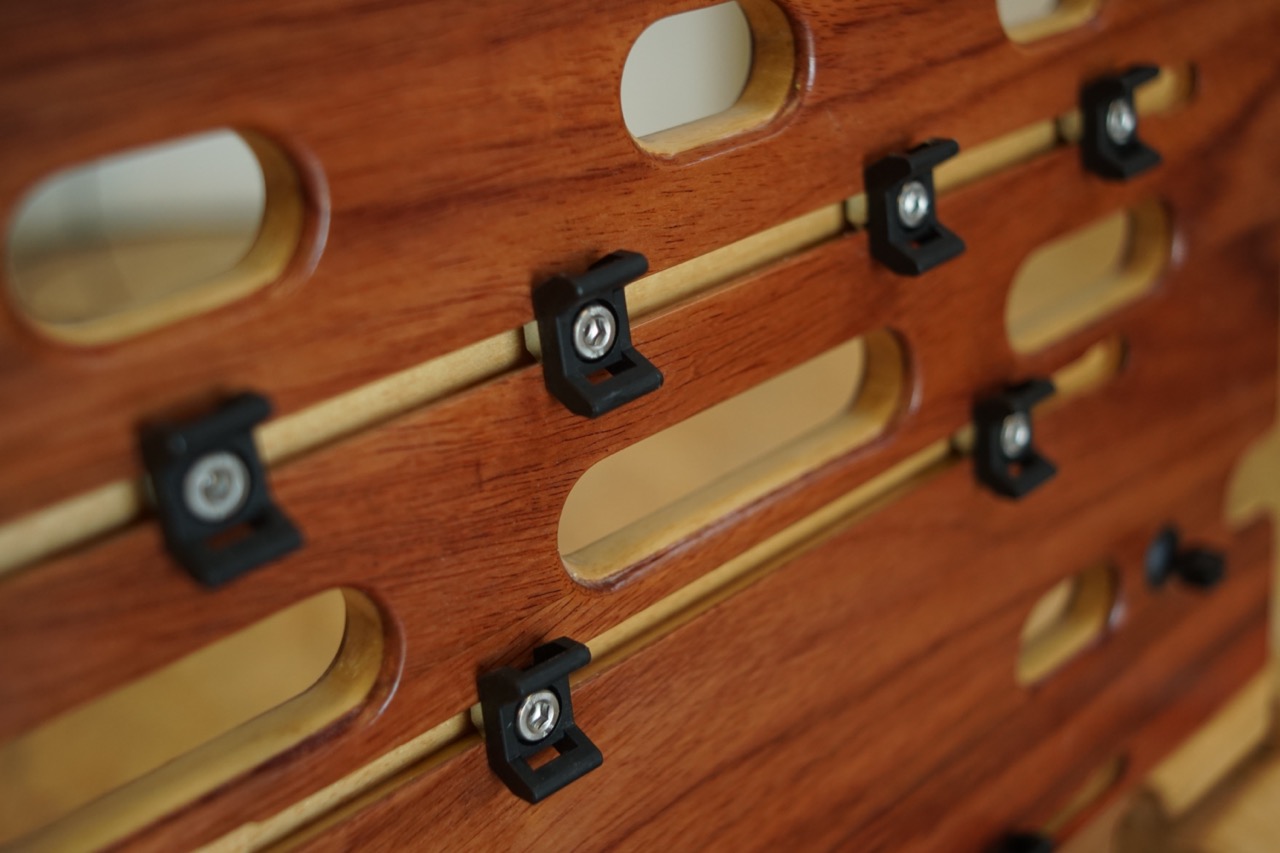 Tras comprobar estos detalles, llega la parte que más nos gusta; hablar contigo para conocer mejor tu historia e inspirarnos a la hora de hacer que tu pedalboard sea única y exclusiva. Escogeremos los diferentes tipos de madera y diseñaremos motivos ornamentales junto a ti que aplicaremos con diferentes técnicas como la marquetería, talla o grabado en diferentes zonas de la pedalboard.